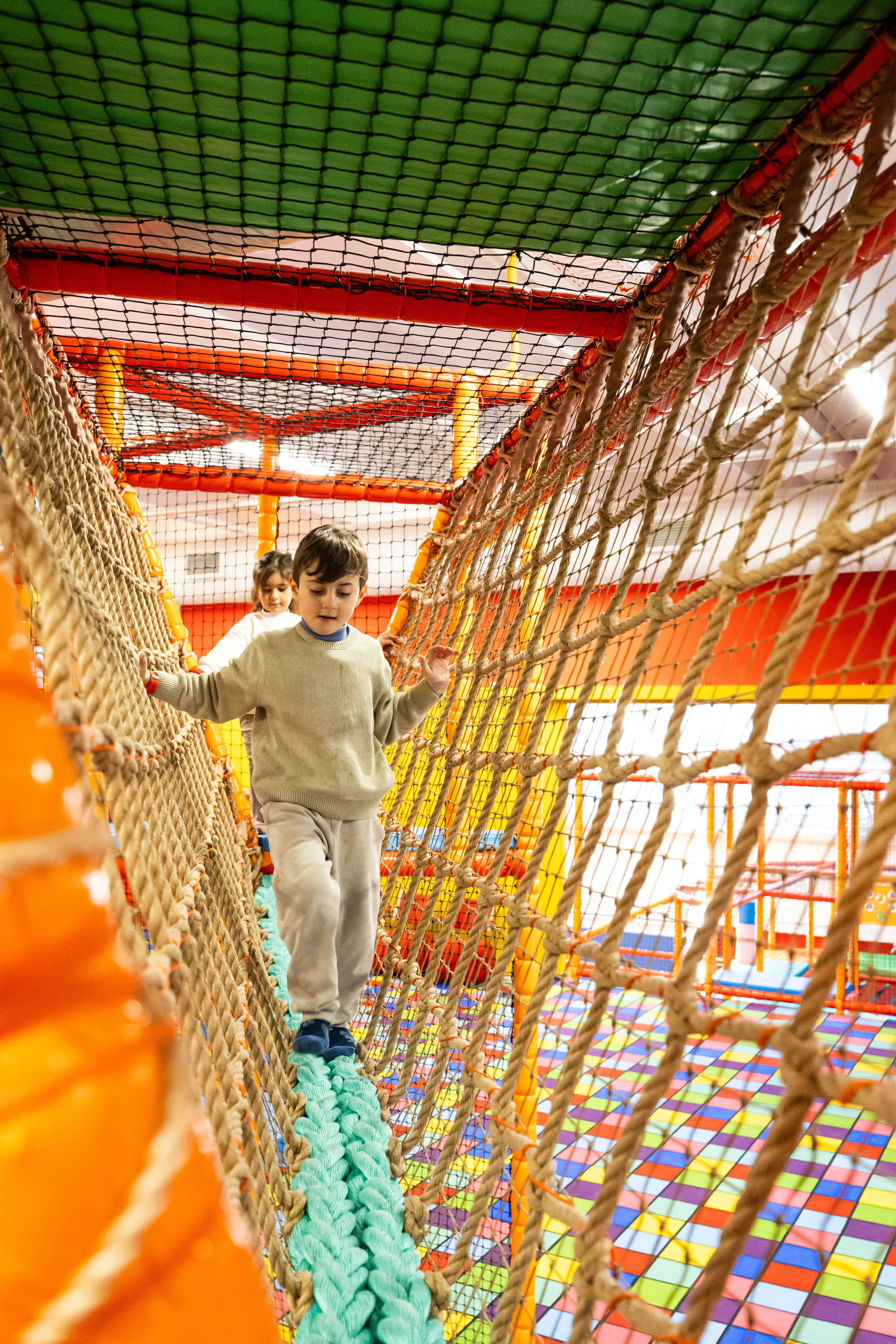 Hier warten fünf Kletterebenen über zwei Etagen für 300 Kinder. Kletter-, Sprung- und Rutschstationen führen dich nach oben. Die Highlight-Rutsche startet im Obergeschoss und endet unten – ein Abenteuer ohne Ende. Interaktive RFID-Stationen speichern deine Zeiten und Rekorde.