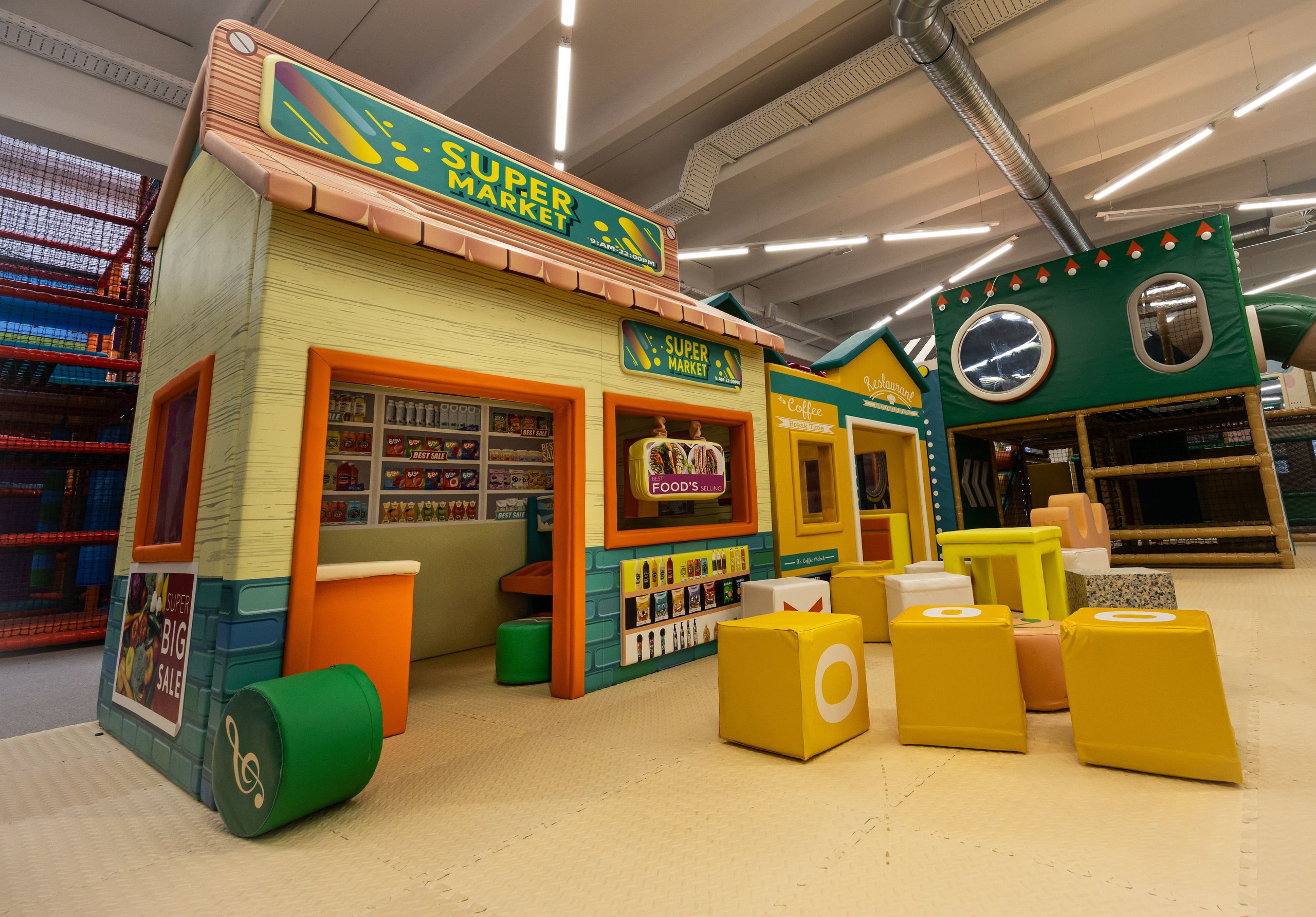 Der Kleinkindbereich ist transparent gestaltet. Du siehst dein Kind immer, während es spielt und entdeckt. Du kannst auch mitspielen.